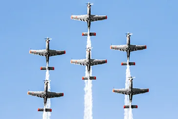 一般の飛行機から軍隊の飛行機まで、数多くの飛行機が空中でパフォーマンスをします。